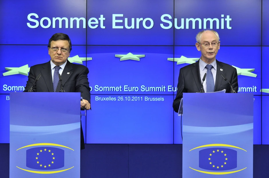 Po završetku sastanka lidera evrozone u prestonici Eu medijima su se obratili Herman Van Rompej, predsednik Evropskog saveta i Žoze Manuel Barozo, predsednik Evropske komisije.