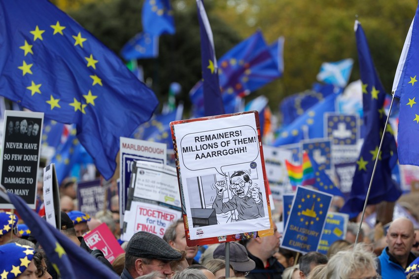 Mnogi su nosili transparente s porukama u kojima se, između ostalog, Bregzit upoređuje sa izborom predsednika SAD Donalda Trampa, neki su bili obučeni u razne kostime, od kojih jedna grupa kao voće i povrće, a neki su nosili lutke ismevajući političare, pre svega premijera Borisa Džonsona.