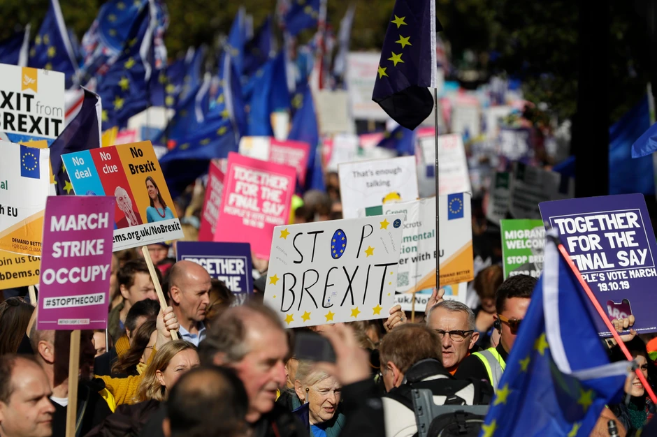 Storine hiljada građana izašle su danas na ulice Londona zahtevajući novi referendum o izlasku Velike Britanije iz Evropske unije, dok se u parlamentu vodi debata o sporazumu koji je premijer Boris Džonson postigao s Briselom o Bregzitu, do koga bi trebalo da dođe 31. oktobra.