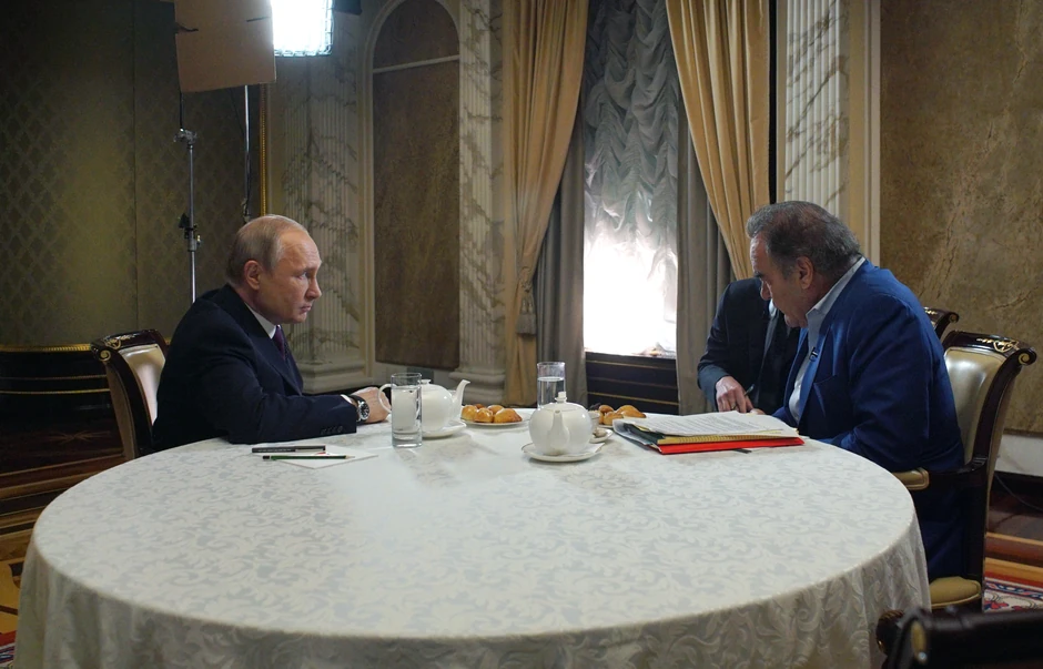 Stoun je već za sobom imao dokumentarce o Fidelu Kastru i Ugu Čavesu, pa je Putin bio logičan izbor sledećeg kandidata, navodi list. Putina je upoznao kad je došao u Rusiju 2015. radi razgovora sa Edvardom Snoudenom, bivšim radnikom CIA i NSA koji je svetu razotkrio masovni nadzor. Stoun je intervjuisao Putina tokom dve godine o rusko-američkim odnosima, ukrajinskoj krizi nakon aneksije Krima 2014, širenju NATO itd, sa ciljem, kako je rekao da američki građani čuju i razumeju rusku stranu. Tako je nastala četverosatna serija “Intervjui sa Putinom”.