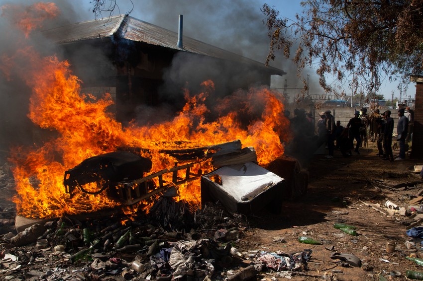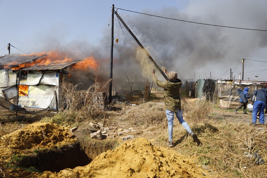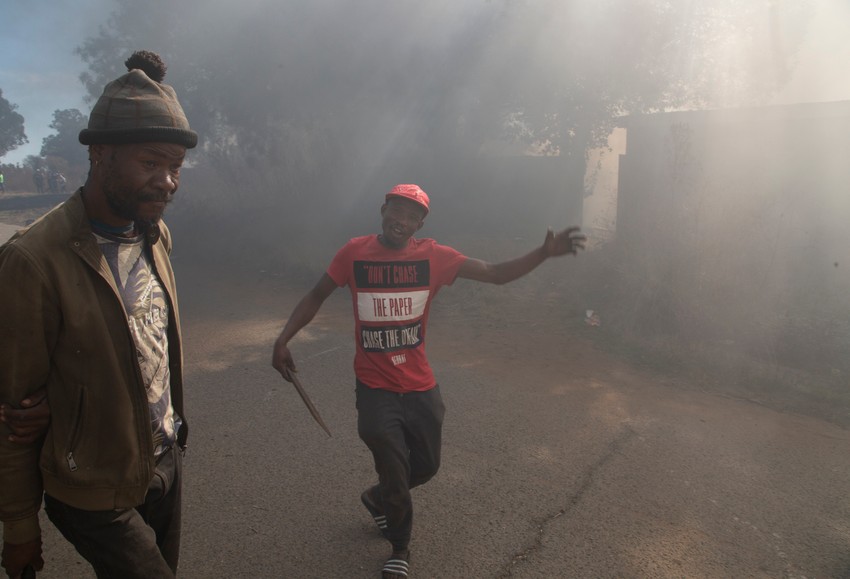 Rudarski kampovi su zapaljeni, a putevi oko gradova Mansivil i Bekersdal izvan grada Кrugersdorpa, zapadno od Johanesburga, zabarikadirani kamenjem i zapaljenim gumama dok su stanovnici protestovali protiv prisustva ilegalnih rudara.