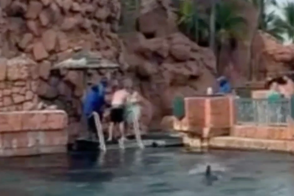 Objavljeni su jezivi snimci koji pokazuju trenutke nakon što je ajkula 10-godišnjeg dečaka ugrizla za nogu dok je plivao u rezervoaru u odmaralištu na Bahamima.