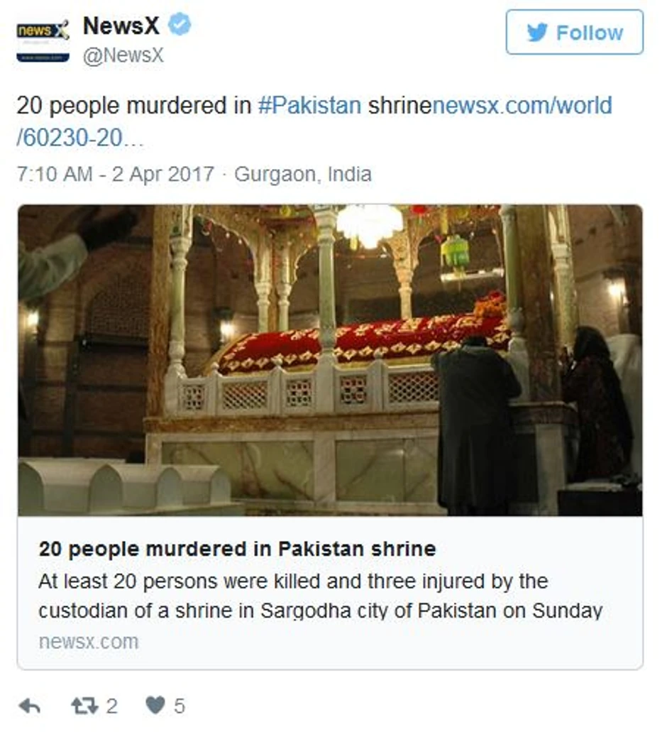Policijski zvaničnik Lijakvat Ali Čata rekao je da se incident dogodio u hramu Muhameda Ali Gudžara u selu u oblasti Sargoda udaljene oko 200 kilometara od grada Lahorea.