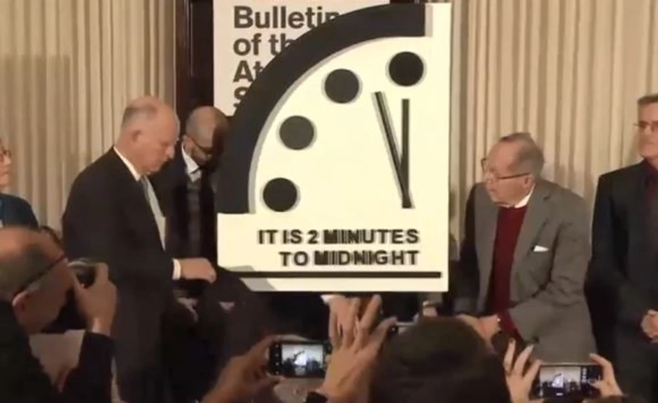 Kazaljka sata se nalazi dva minuta do ponoći kao i 1953. godine kada su SAD i Sovjetski savez testirali hidrogensku bombu, navodi se u izveštaju Biltena nuklearnih naučnika (Bulletin of the Atomic Scientists - BSA).