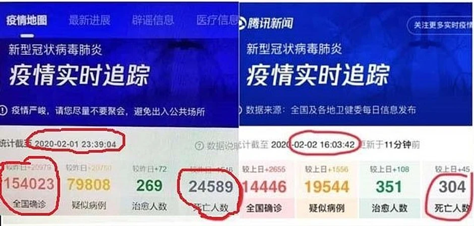 "Tencent" je objavio ove informacije na sajtu posvećenom praćenju podataka o epidemiji “Epidemic Situation Tracker”, ali su one ubrzo potom uklonjene sa stranice i zamenjene zvaničnim informacijama o 304 žrtve i 14.446 zaraženih.