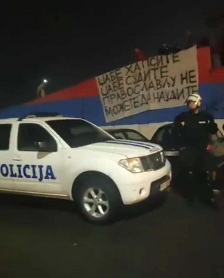 Intervencija policije počela je oko 20 časova, a devetnaestoro mladih je pokušalo da odbrani trobojku iscrtanu na zidu ispod pasarele u blizini Osnovne škole "Dragiša Ivanović".