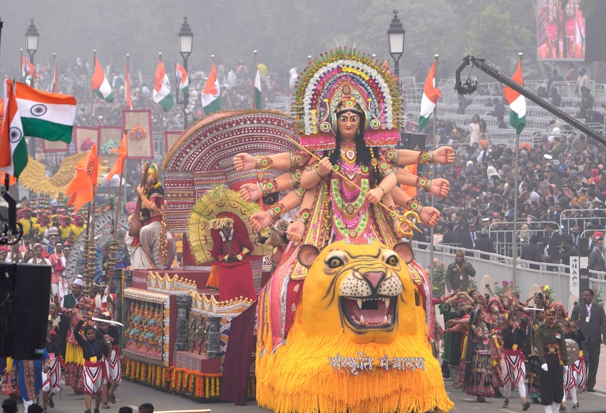Bogato i raznoliko nasleđe zemlje predstavljeno je živopisnim slikama iz različitih država i ministarstava, naglašavajući centralnu temu "nari šakti" ili ženske moći.