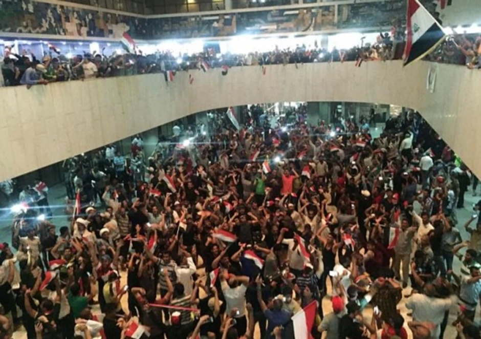 Nekoliko stotina pristalica Al Sadra upalo je ranije danas u "Zelenu zonu" i zgradu parlamenta nakon što poslanici nisu izglasali novi kabinet ministara.