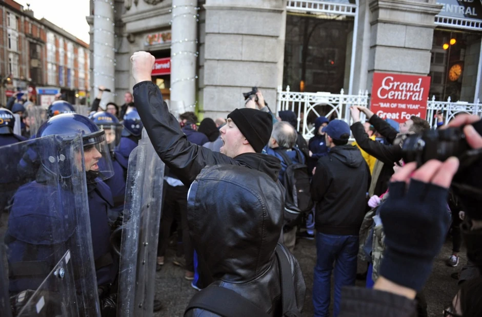 Demonstranti su razvili transparente sa natpisima "Učinimo Irsku ponovo velikom", aludirajući na slogan predsednika SAD Donalda Trampa u vezi sa Amerikom, kao i sa porukom Spasimo naš hotel.
