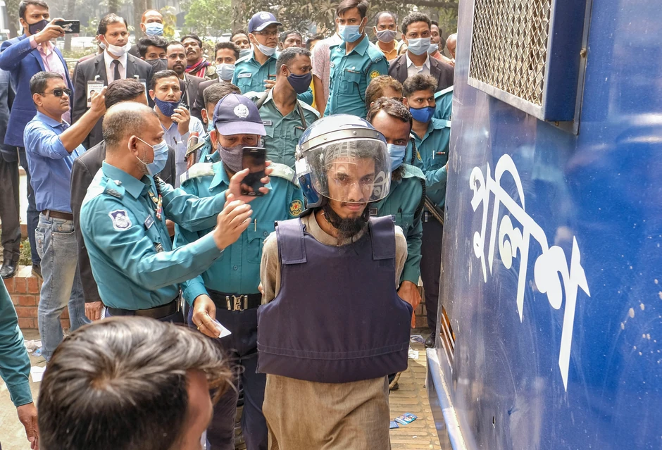 Bangladeška policija sprovodi jednog od optuženih za ubistvo blogera (Foto: Mahmud Hossain / Tanjug/AP)