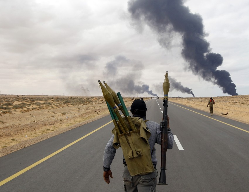 Tokom napada sa kopna i iz vazduha, snage lojalne libijskom vođi Moameru gadafiju bombardovale su put koji vodi do aerodroma i pregrađe Abu Hadi u Bengaziju, tvrde očevici. Libijski pobunjenici, koji Bengazi "drže" već od prvih dana pobune protiv Gadafijevog režima koja je počela 15. februara, danas su saopštili da su primorani na povlačenje, zbog žestokih napada snaga lojalnih Gadafiju. Arapska satelitska televizija Al Džazira je objavila da su Gadafijeve snage ušle u zapadna predgrađa Bengazija, a pobunjenik Halid Ahmed iz baze na zapadnom obodu Bengazija rekao je da su Gadafijeve snage juče bile na 60 kilometara od Bengazija, danas su na 20 kilometara i da bi uskoro mogli da se probiju.