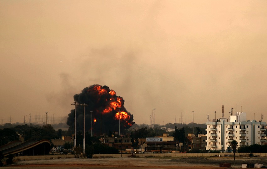 Prema izjavama očevidaca više jakih eksplozija čule se večeras istočno od Tripolija a an horizontu su se videle plamteće kugle.