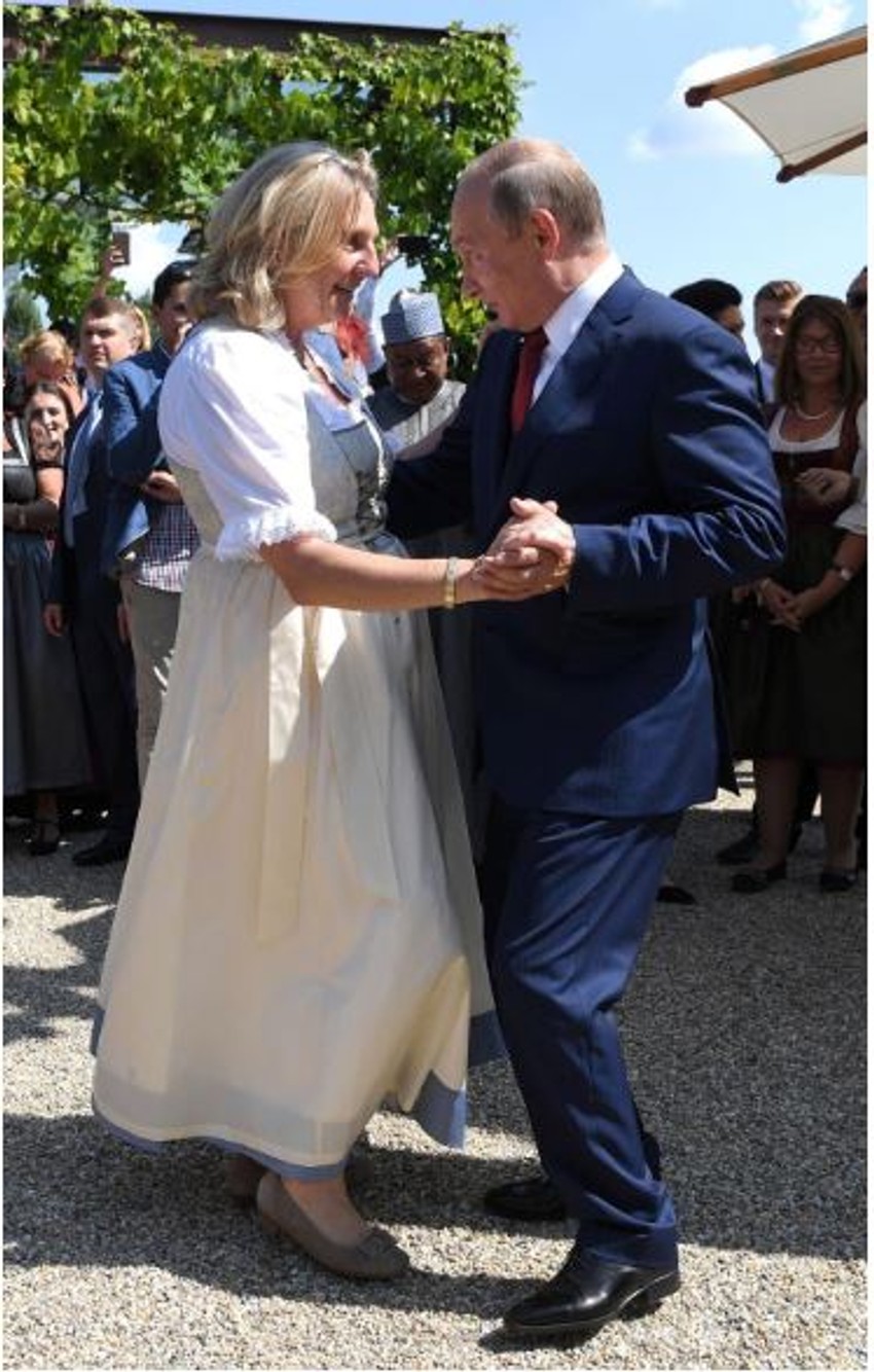 Objavljene su i fotografije i snimci sa svadbe austrijske ministarke spoljnih poslova Karin Knajsl, na kojima se vidi i svat koji je izazvao najviše kontroverze - ruski predsednik Vladimir Putin.