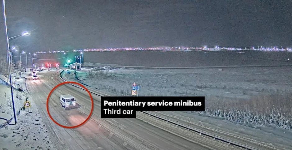 "Mediazona je izvršila analizu snimaka uživo snimljenih na ledenom putu koji povezuje grad Labitnangi, najbliži kaznenoj koloniji u selu Harp, gde je bio zatvoren Aleksej Navaljni, sa Salehardom, jedinim zemaljskim putem do regionalnog čvorišta. Uspeli smo da identifikujemo ponoćni konvoj od četiri vozila, uključujući vozila FSIN-a, kazneno-popravne službe, koja je prelazila zaleđeno prostranstvo reke Ob ka Salehardu. Ovaj tajming nas navodi da verujemo da je telo Navaljnog transportovano u Salehard u ovom konvoju", navodi Mediazona.