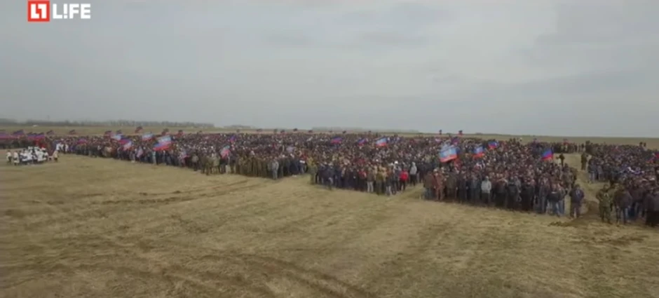 Radi se o muškarcima starijim od 18 godina koji su se okupili na poligonu Saur-Mogila u Donjeckoj oblasti, inače poprištu jedne od najkrvavijih bitaka u ukrajinskom građanskom ratu, ali i u Drugom svetskom ratu.