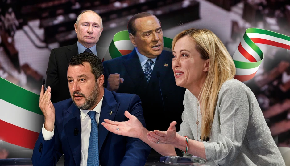 Berluskoni je blizak Putinov prijatelj, dok ga je Salvini 2019. hvalio kao “trenutno najboljeg državnika na Zemlji”. Njihove partije su, zajedno sa Pokretom pet zvezdica, osporile slanje oružja Ukrajini. Nakon što su uskratile podršku Dragiju i srušile vladu, došlo je do optužbi da je podrška Ukrajini odlazećeg premijera bila motiv toga.