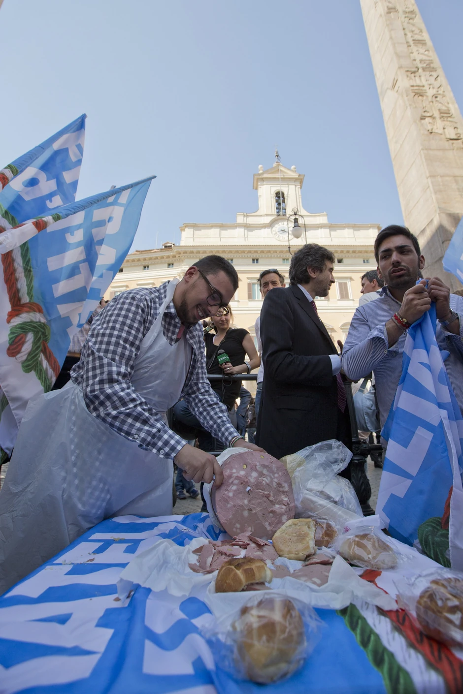 Oko 200 demonstranata okupilo se danas ispred italijanskog parlamenta sa ogromnim parčetom mortadele u znak protesta protiv mogućeg izbora bivšeg premijera Romana Prodija (73) za novog predsednika Italije.