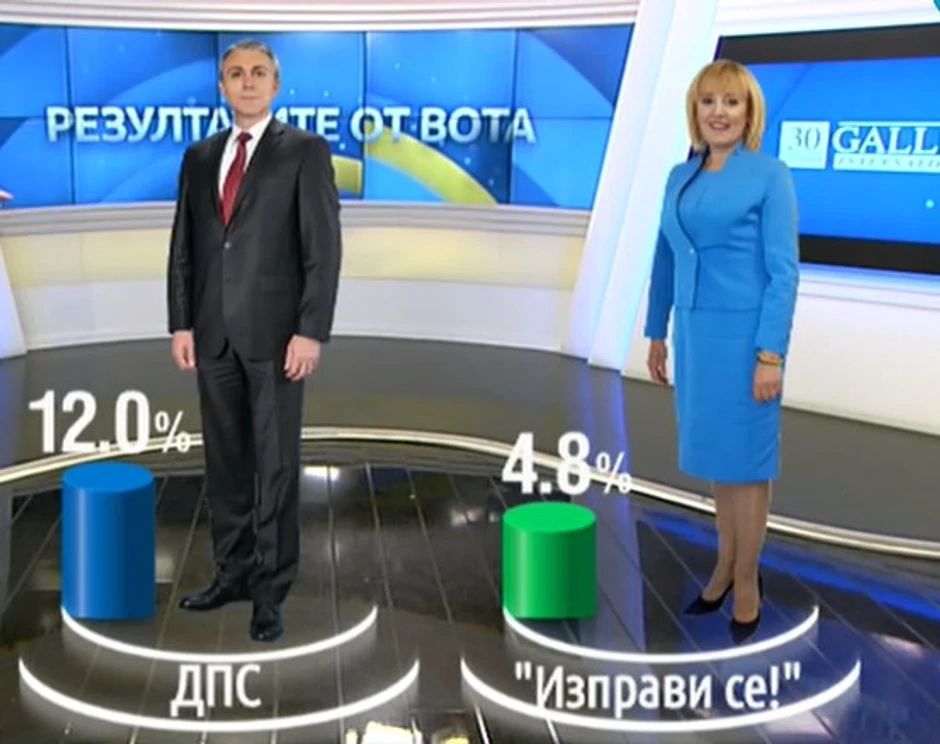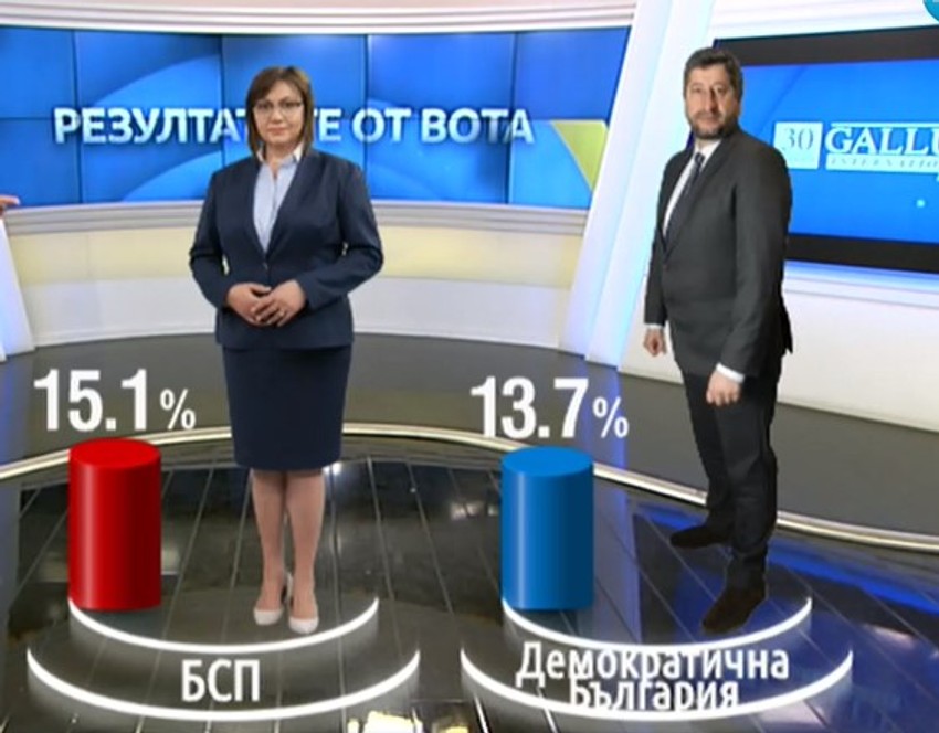 Prema rezultatima tri agencije, „Postoji takva narod“ (ITN) predvođen popularnim TV voditeljem i pevačem Slavijem Trifonovim, pobedila je na izborima sa 23,9% glasova, prema podacima Alpha Research na 100% paralelnog brojanja uzorka, izvestio je BNT.