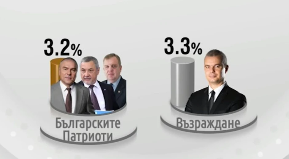 Desničarska GERB-UDF, stranka bivšeg premijera Bojka Borisova, ostaje druga po snazi sa 23,4%. Slede BSP sa 13,1%, „Demokratska Bugarska“ sa 12,8%, MRF sa 11,3% i „Ustanak! Mafija napolje! “ sa 5%.