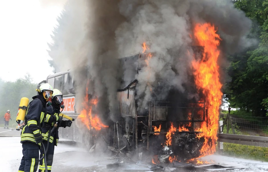 Naime, prema policijskim informacijama, čovek na A99 kod Nojherberga primetio je da se u zadnjem delu njegovog autobusa razvija dim. Odmah je zaustavio autobus na ivici autoputa. Svih 52 putnika, od kojih je većina u tom trenutku još spavala, i vozač uspeli su nepovređeni da izađu iz vozila pre nego što je ono u kratkom roku zahvatio plamen i buknula je vatra. Nakon toga, autobus je u potpunosti izgoreo, dodaje portal.