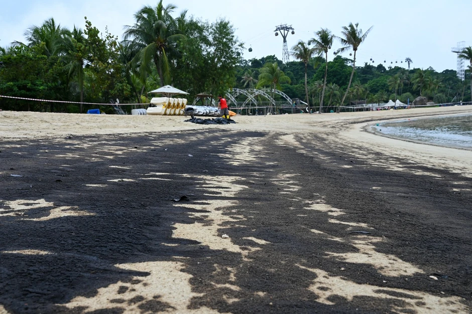 Voda i pesak na plaži Tanjong na ostrvu Sentosa zamračeni su zbog mrlje od izlivene nafte, koja se dogodila nakon sudara dva broda. Izlivanje nafte proširilo se sa obližnjeg brodskog terminala Pasir Pandžang nakon što je u petak brod s bagerom udario u stacionarni bunker.