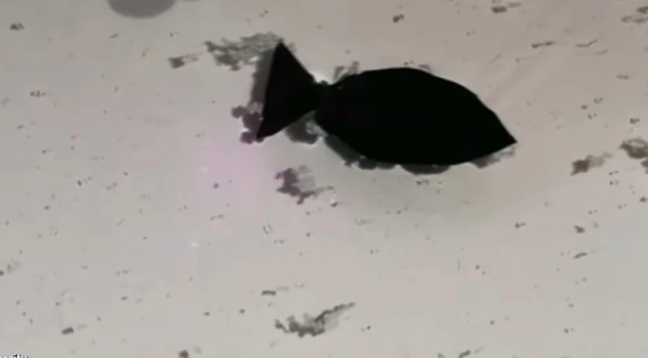 Crna robotska riba je osvetljena i može da zamahne perajama i pomera telo, a naučnici mogu da je kontrolišu zahvaljujući svetlu kako bi izbegli da je ne progutaju druge ribe ili oštete plovila.