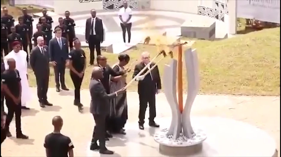Na društvenim mrežama osvanuo je snimak ove nezgodne situacije, kada se Junker, držeći veliku baklju u rukama naglo okrenuo ne videći da iza njega stoji upravo supruga ruandskog predsednika.