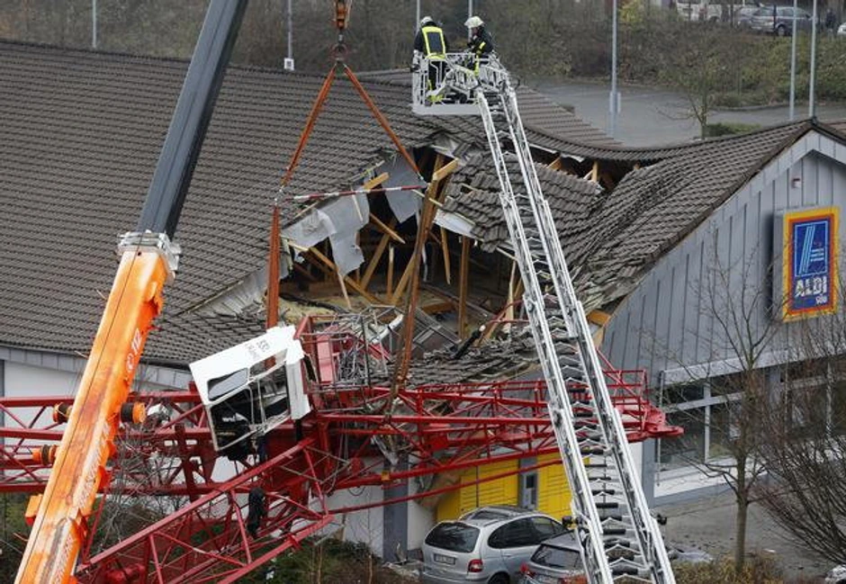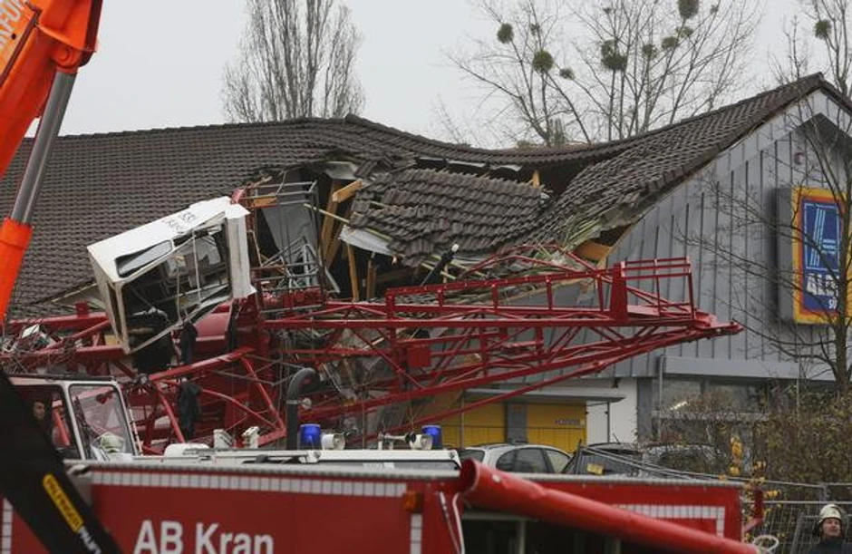 Jedna osoba je poginula a pet je povredjeno danas kada se kran srušio na samoposlugu u zapadnoj Nemačkoj, javila je nemačka policija.