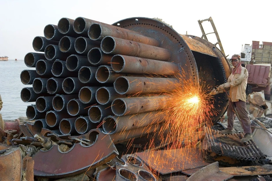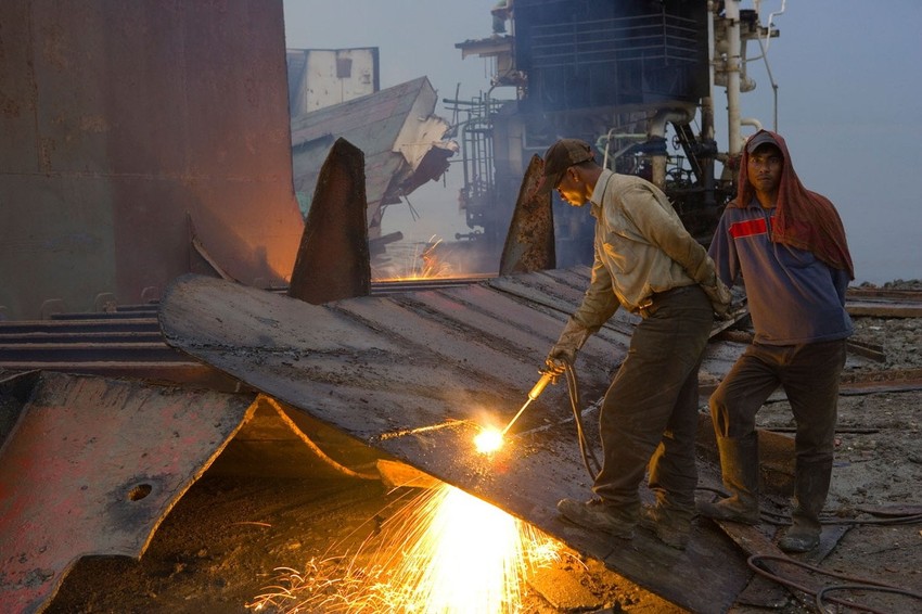 Siromašni radnici Bangladeša koriste acetilenske baklje da izrežu stare brodove na komade. Ostaci se potom tope i prerađuju, ističe “Dejli mejl”.