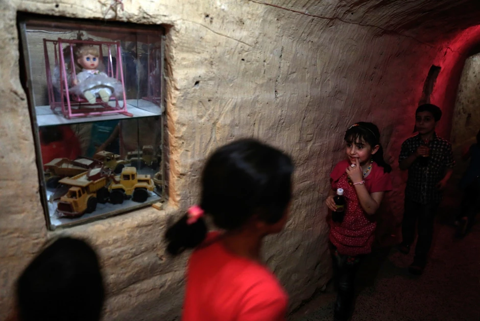 Prema podacima UN, čak 500.000 mališana iz Siriji živi u 16 oblasti koje su pod opsadom širom zemlje. Oni ne mogu da se igraju na ulici zbog opasnosti, pa zato nalaze utočište u "podzemnim igraonicama".