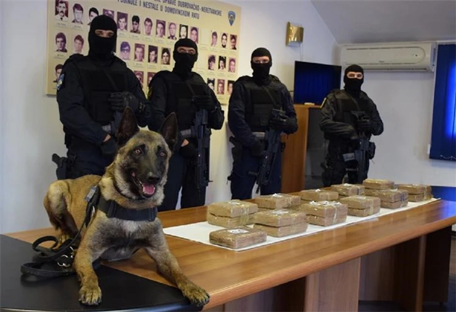 Predstavnik Službe kriminalističke policije PU dubrovačko-neretvljanske Zoran Tikvica rekao je da je drogu nanjušio službeni policijski pas, dvogodišnji belgijski ovčar Džoni.