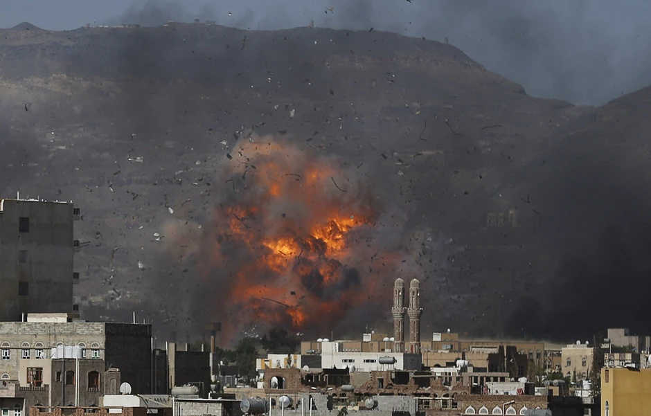 Najmanje 69 ljudi je poginulo, a 250 ranjeno u eksplozijama koje su usledile nakon što su avioni koalicionih snaga sunitskih zemalja pogodili skladište oružja u istočnom predgrađu jemenske prestonice Sane.
