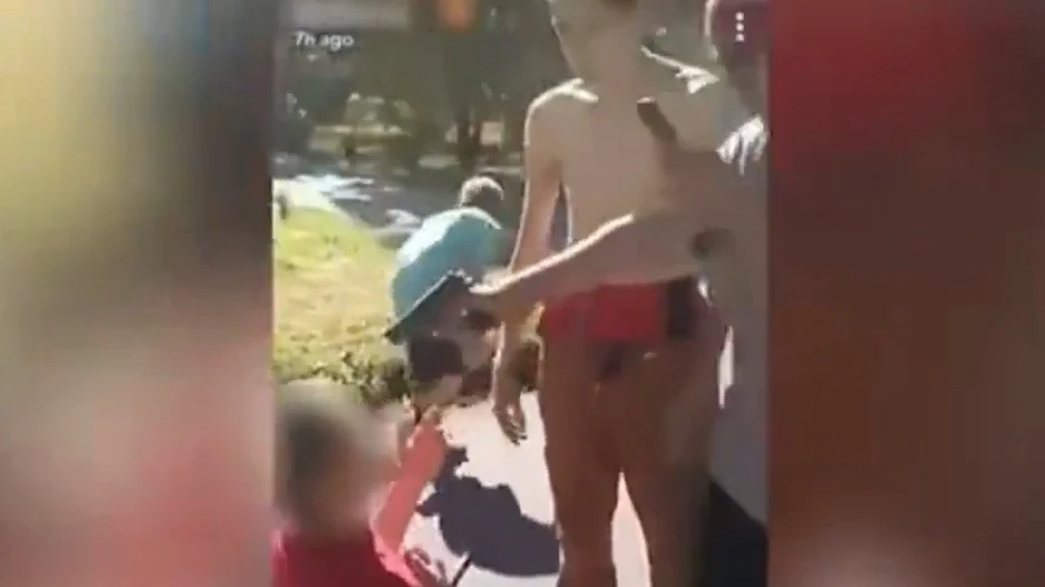 Kako se vidi na snimku, oni su dečaka u više navrata udarali pesnicama u glavu i lice, a u jednom trenutku su mu uperili pištolj u glavu tražeći od njega da ljudi noge jednom od njih.