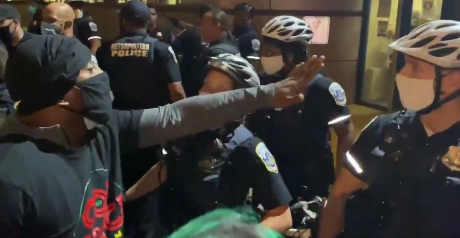 Na video snimcima koji su kasnije postavljeni na društvene mreže mogli su se videti policajci kako postavljaju bicikle kao barijeru naspram ogorčenih i besnih građana američke prestonice.