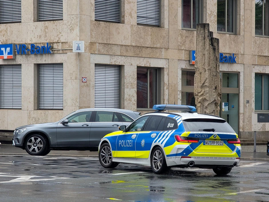 Divljačka trka je naglo prekinuta u ulici Vahsblajhštrase. Osumnjičeni su izgubili kontrolu nad kombijem i silovito se zakucali u četiri parkirana automobila. Udarac je bio toliko stravičan da je prednji desni točak Mercedesa potpuno otkinut.