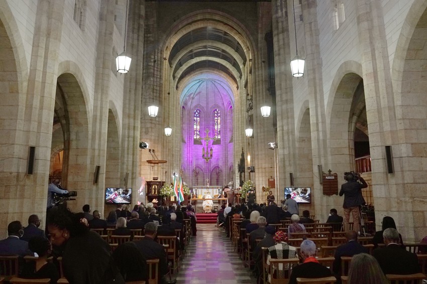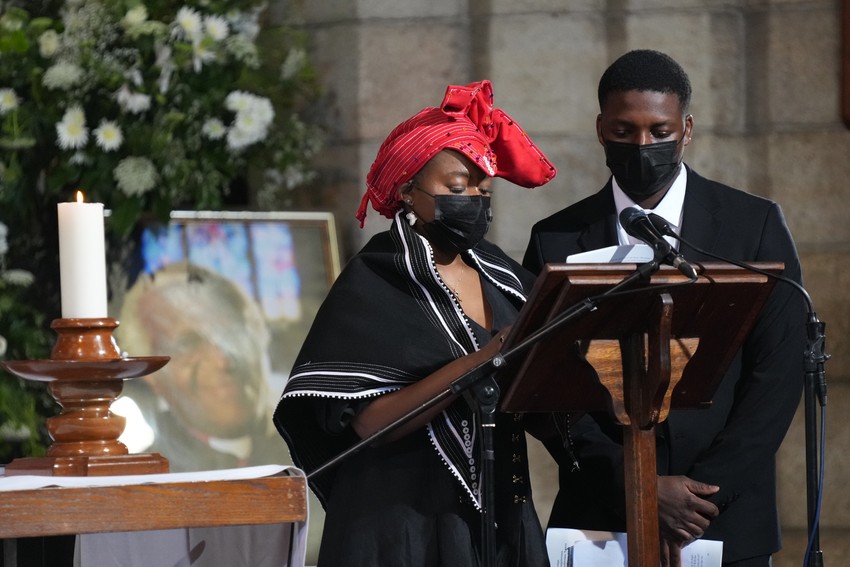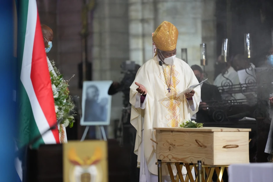 Liturgija za bivšeg anglikanskog nadbiskupa Kejptauna održava se u katedrali Svetog Jurja i emituje se na južnoafričkoj državnoj televiziji. Njegov pepeo će biti sahranjen u mauzoleju unutar katedrale.