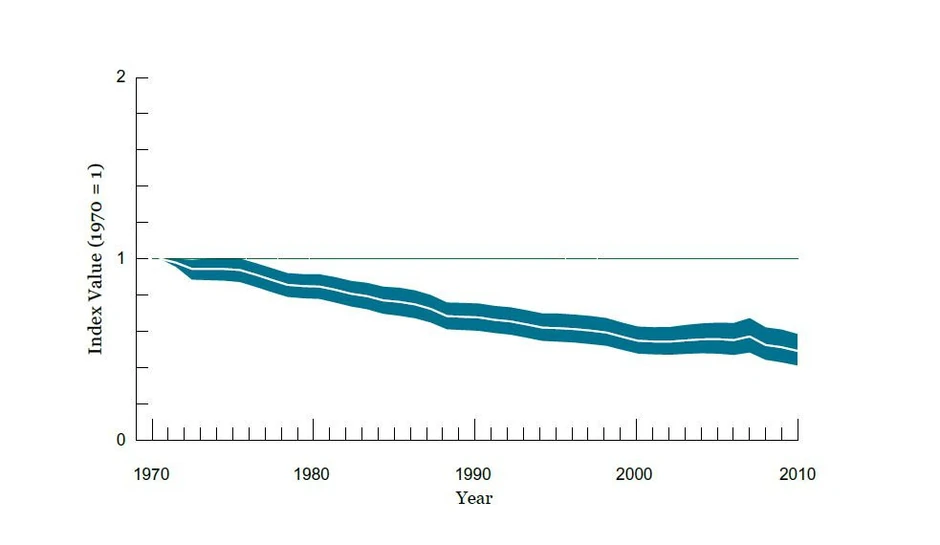 U danas objavljenom izveštaju za 2014, navodi se da je brojnost sisara, ptica, gmizavaca, vodzemaca i riba opala u proseku za 52 odsto. Slatkovodne vrste riba i vodenih životinja pretrpele su pad od čak 76 odsto, što je dvostruko više od kopnenih ili morskih vrsta.