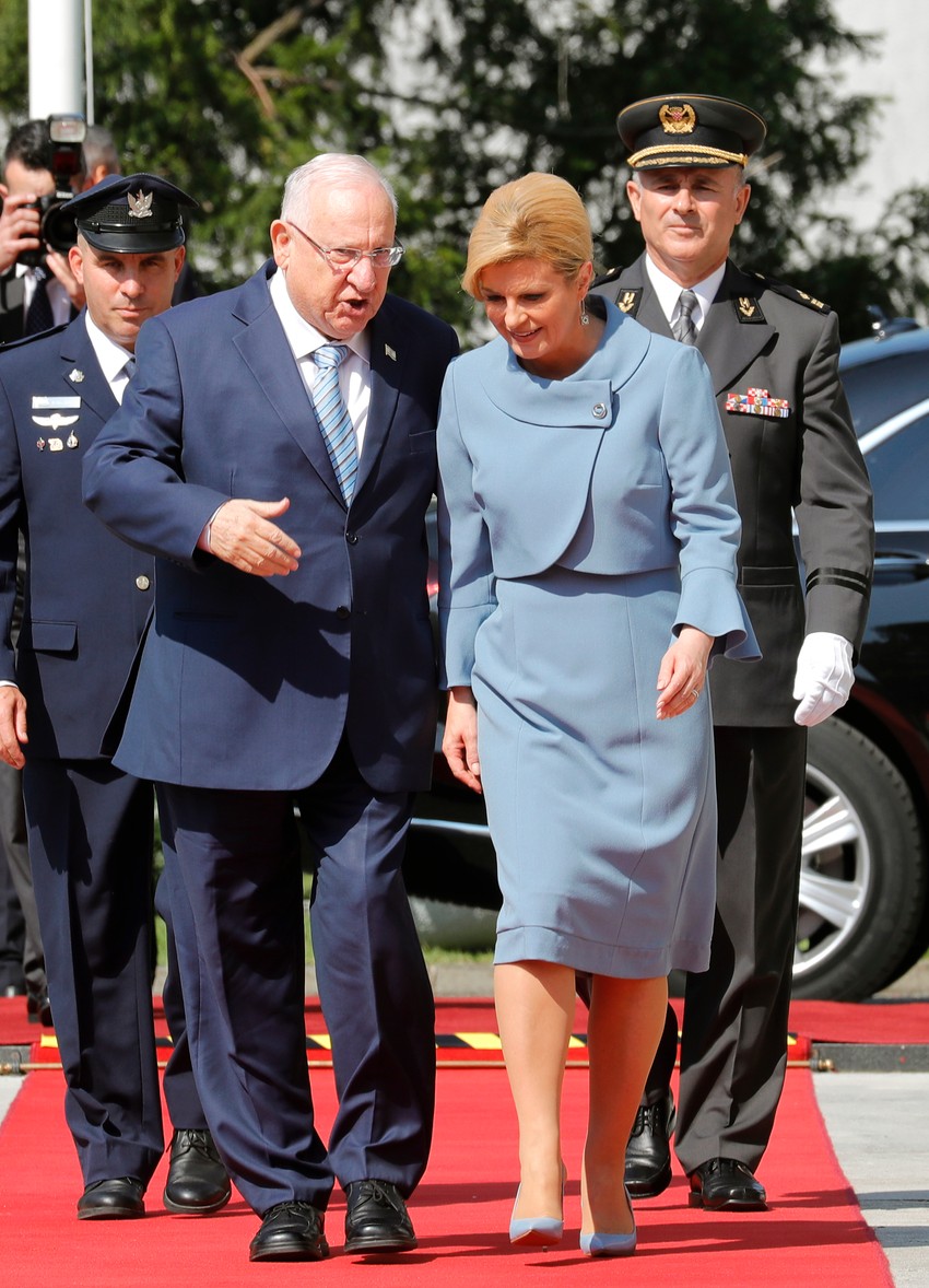 Kitarovićeva i izraelski predsednik Ruven Rivlin odali su počast žrtvama Holokausta u ovom ozloglašenom koncentracionom logoru. Tokom posete jasenovačkom stratištu, na kojem je ubijeno stotine hiljada ljudi, mahom Srba, Jevreja i Roma, te antifašista, Kitarovićeva je navela da je "potresno čuti svedočanstva onih koji su preživeli jasenovačko mesto užasa".