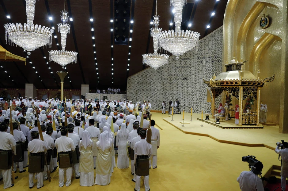 Raskošna svečana ceremonija koju je vladarska porodica priredila u prestonoj dvorani palate Istana Nurus Iman sa 1700 soba podsećala je na prizore iz 1001 noći.