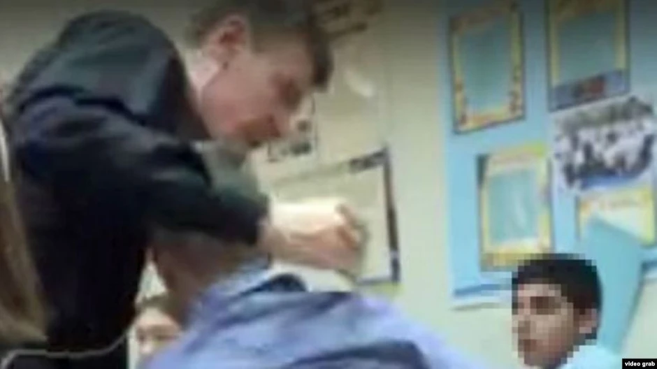 Čudna stvar se desila kada je nastavnik "bezbednosti" Viktor Sadlinski uhvaćen na video-snimku kako udara srednjoškolce u ruskom selu Borovski, piše Slobodna Evropa.
