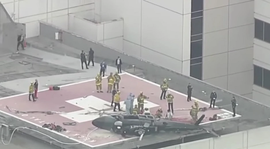 Na dramatičnom snimku incidenta vidi se kako se privatni bolnički helikopter vrti bez kontrole, tokom sletanja na krov bolnice Kek u Bojl Hajtsu u petak iza 15.00 popodne.