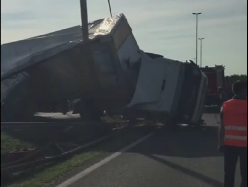 Na zagrebačkoj obilaznici kod motela Plitvice u Hrvatskoj prevrnuo se šleper beogradskih tablica.