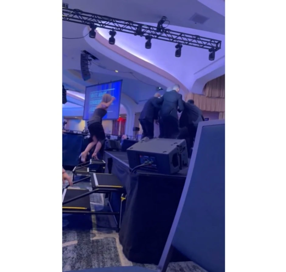 Na jednom od snimaka pucnjave u hotelu u Vašingtonu, tokom gala večere predsednika Donalda Trampa i drugih visokih američkih zvaničnika sa dopisnicima iz Bele kuće, vidi se kako telohranitelji odvode američkog ministra zdravlja Roberta F. Kenedija Mlađeg, dok su njegovu suprugu ostavili da sama trči za njima.
