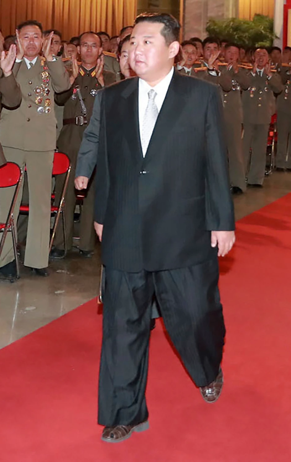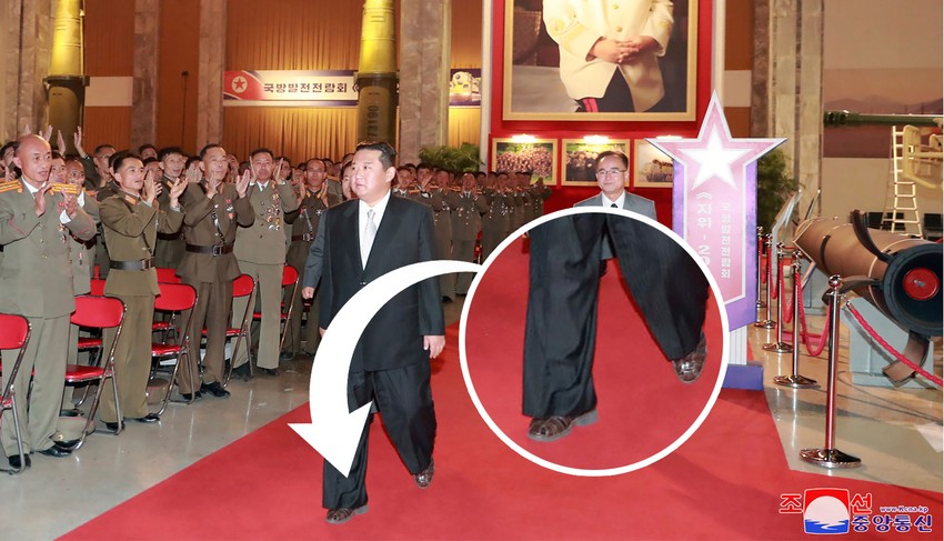 Kim se pojavio na crvenom tepihu noseći sjajne, crne sandale i crne čarape, u tamnom odelu sa kravatom i naočarima. Kolin Zvirko, analitičar “NK njuza” iz Seula, primetio je njegovu obuću, ali nije jasno zašto je Kim odlučio da obuje sandale, niti da li ih je nosio ranije.