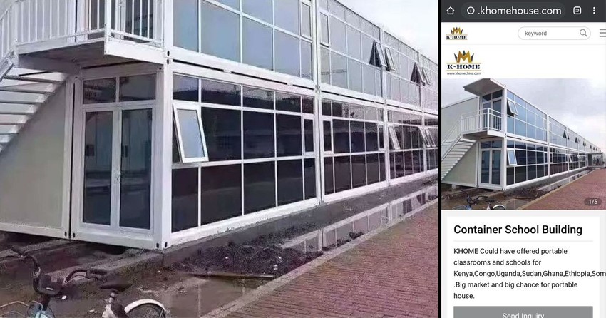 Dalje, kompanija iz grada Sinsjang u okrugu Hongki, navodi da u pravljenju "prenosnih škola" ima iskustvo od 15 godina, kao i da se kontejneri mogu brzo instalirati.