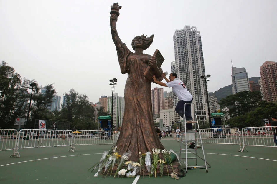 Statua visoka 6,4 metara pod nazivom "Boginja demokratije" uklonjena je sa trga ispred Kineskog univerziteta u Hongkongu (CUHK), naveo je Rojters.