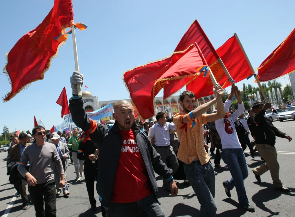 Demonstranti su se zatim uputili ka centralnom trgu u Džalalabadu, a neki od njih su bacali zapaljive bombe.