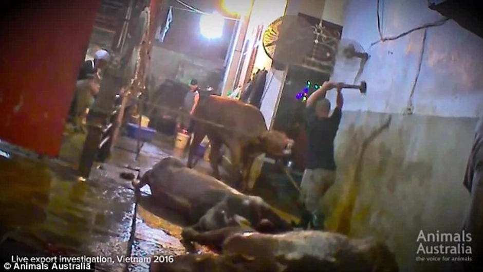 Radnici čekićem surovo ubijaju životinje udarcima u glavu, nakon čega se njihovo meso prerađuje i izvozi u Australiju, piše britanski "Dejli mejl". Na video-snimku se vidi kako radnik besomučno udara životinju maljem u glavu. Životinja pada na zemlju, a radnik nastavlja da je udara još nekoliko puta kako bi se uverio da je mrtva.