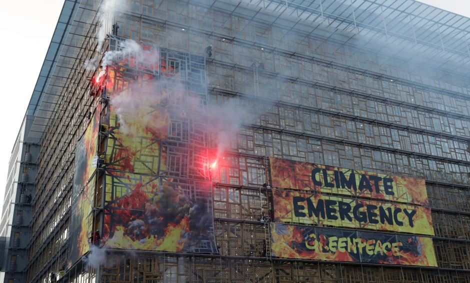 Aktivisti ekoloskog pokreta Grinpis danas su ispred sedišta Evropske unije razvili ogroman transparent kojim upozoravaju na "klimatsku vanrednu situaciju", nekoliko sati pre okupljanja lidera bloka na Samitu usmerenom na planove za borbu protiv globalnog zagrevanja.
