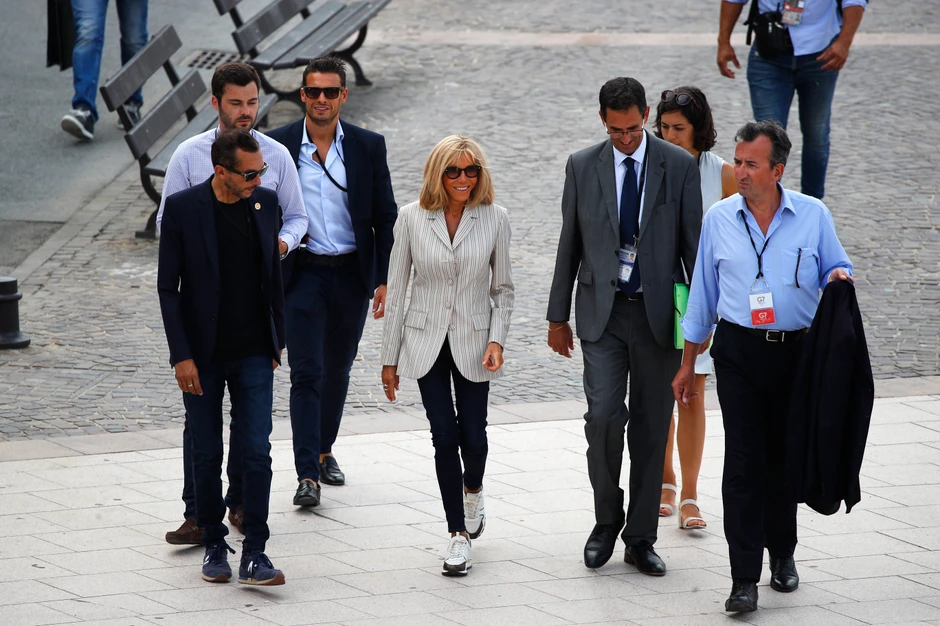 Brižit Makron, supruga predsednika Francuske i domaćina ovog samita Emanuela Markona, iznenadila je svojim neobičnim izborom obuće. Svoj elegantan stajling prva dama Francuske upotpunila je patikama. Na fotografijama se može primetiti da je Brižit nasmejana i dobro raspoložena, dok sa njenim suprugom to nije bio slučaj ako se uzme u obzir veličina zadatka koji ga čeka.